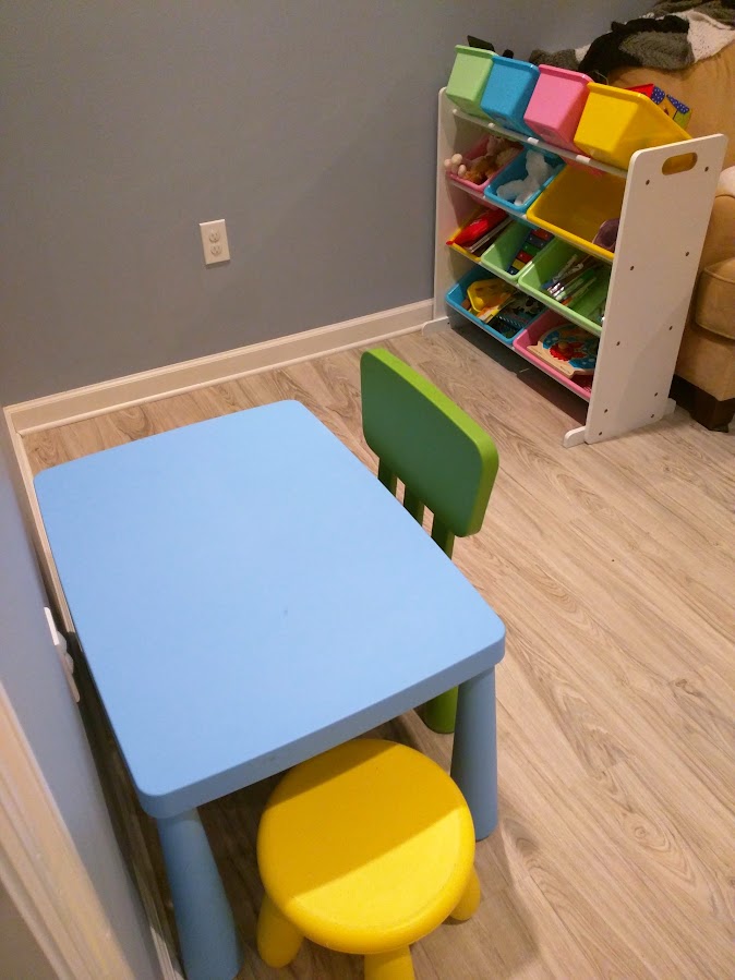 In other news, we changed up the toy situation at our house again, and replaced some of the shelving/closed bins we had in the living room with open bins so that more of the toys would hopefully be visible and therefore played with. We also pared down the toys yet again so that the number of options wouldn't be overwhelming, and added them to the toys stored away upstairs, which also seems to help with interest in them - the kids basically get "new" toys every few months when we rotate them, and something that was maybe beyond their skill level/interest before is now much more fun.